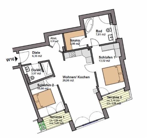 In den Ferienwohnungen der Ferienwohnung-Vermietung von Irene und Robert Koch finden Sie 2 Zimmer und 3 Zimmer FeWo zum Teil mir 2 Schlafzimmer und barrierefreien Bädern teilweise mit Badewanne.
